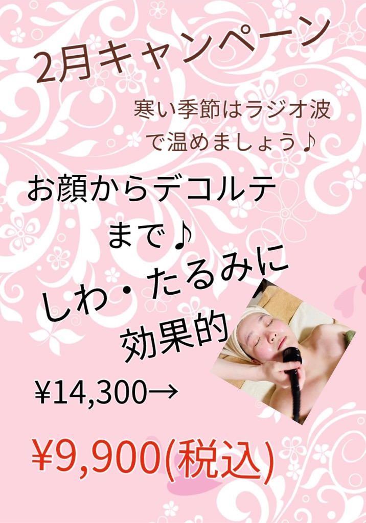 2月はラジオ波フェイシャルでキャンペーン予定です。