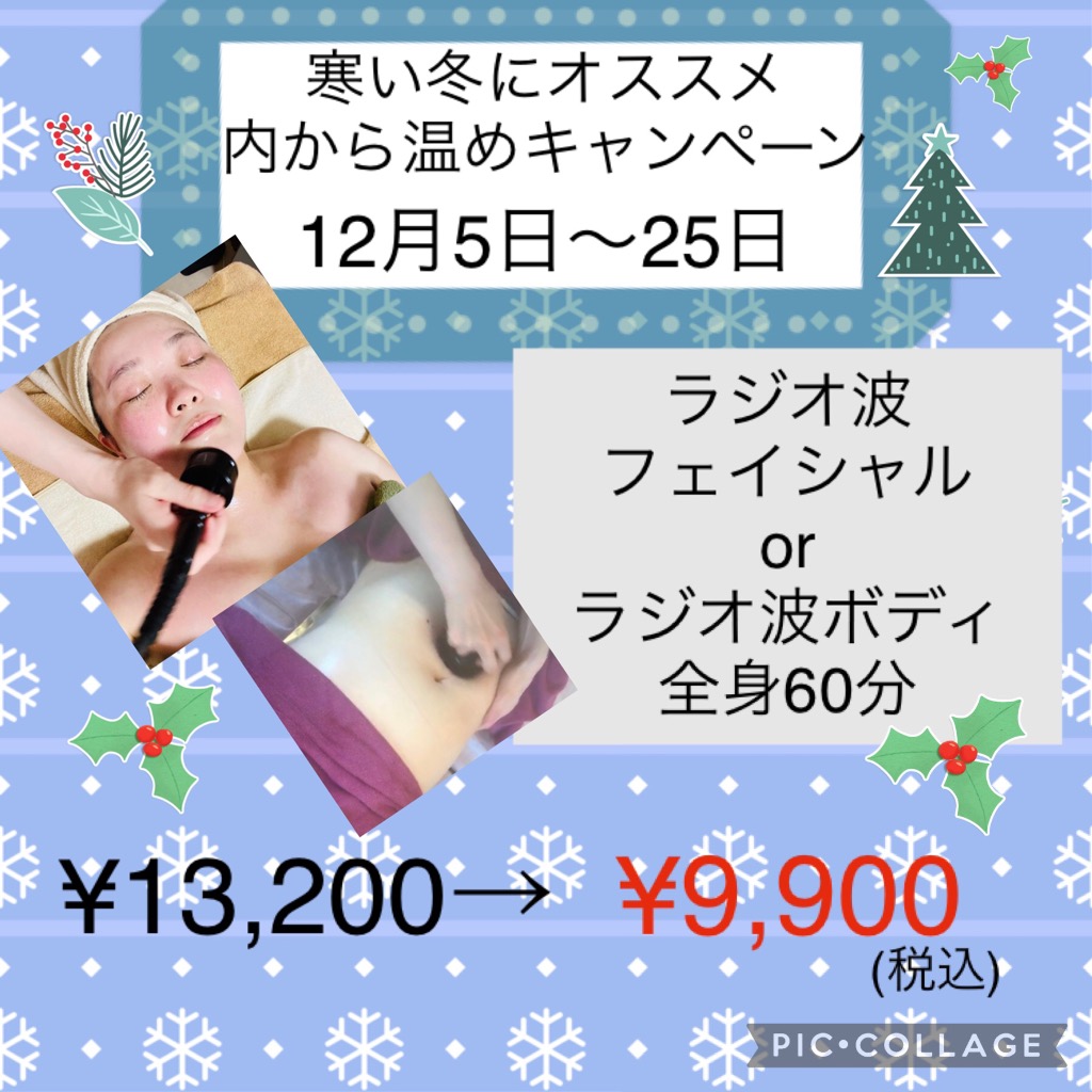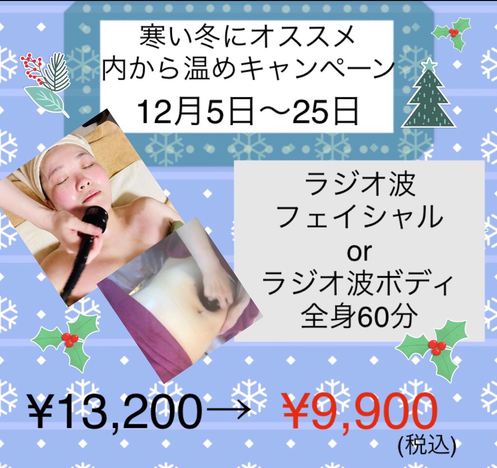 クリスマスやお正月を迎える前にラジオ波で血行促進させつつ、寒さで強張ってしまう筋肉をほぐしておきませんか?